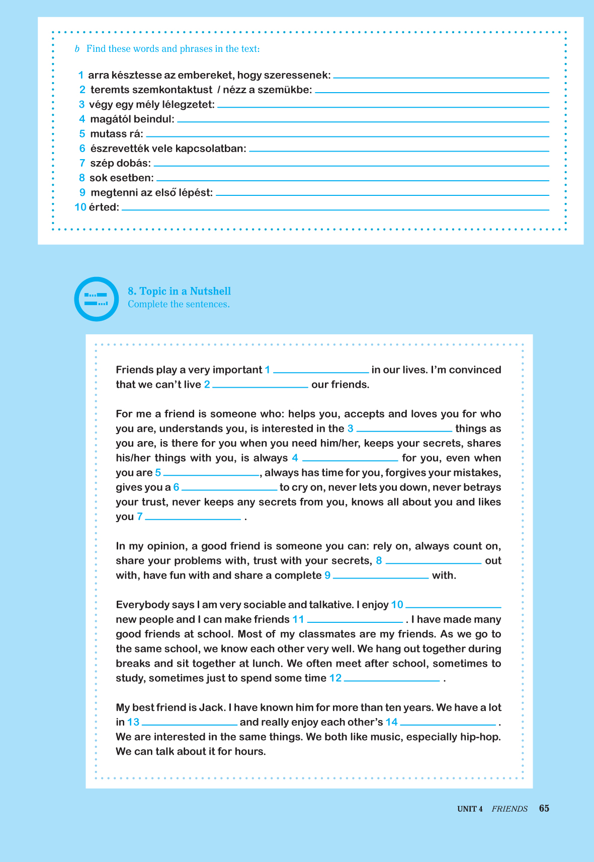 egyedül is elvégezheted a feladatokat, de a legjobb, ha tanulótársat választasz, akivel akár tanár nélkül is feldolgozhatjátok a könyvet;