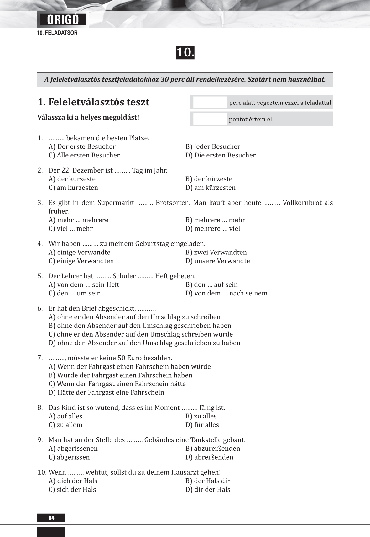 • 15 teljes írásbeli feladatsor, valamennyi feladat megoldókulcsa,