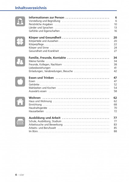 Gyakorlás, bővítés, ismétlés: Német szókincsfejlesztő könyv A1-től B1-ig. A gyakorlatok különös hangsúlyt fektetnek az autentikus kommunikációs helyzetekre és a mindennapi életből vett szövegtípusokra, és nehézségi szintjük szerint kompakt tematikus egységekre vannak osztva.