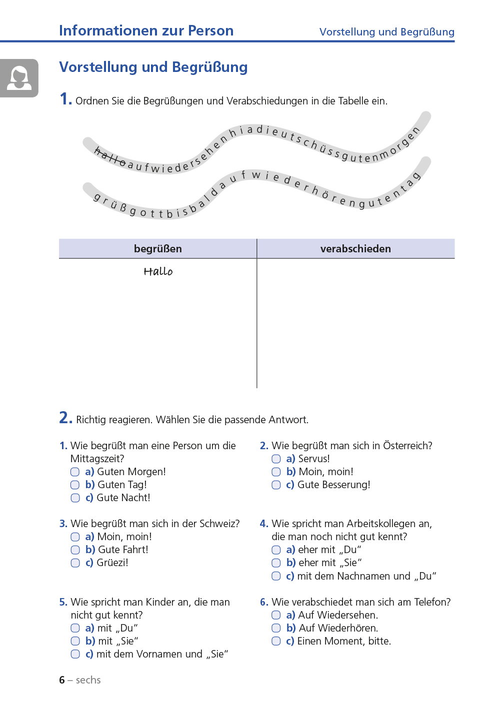 Német nyelvű szókincsfejlesztő könyv, amely több mint 300 változatos szókincsgyakorlatot kínál A1-től B1-ig. A gyakorlatok különös hangsúlyt fektetnek az autentikus kommunikációs helyzetekre és a mindennapi életből vett szövegtípusokra, és nehézségi szintjük szerint kompakt tematikus egységekre vannak osztva. A gyakorlatokat tipikus buktatókkal és kulturális információkkal ellátott jegyzetek teszik teljessé. Az órai használat mellett az integrált megoldókulcsnak köszönhetően önálló tanulásra is ideális.